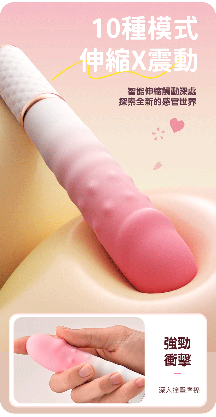 柔和的漸變粉色外觀,搭配智能震動與伸縮系統,滿足從輕柔到強烈的多層次感受。